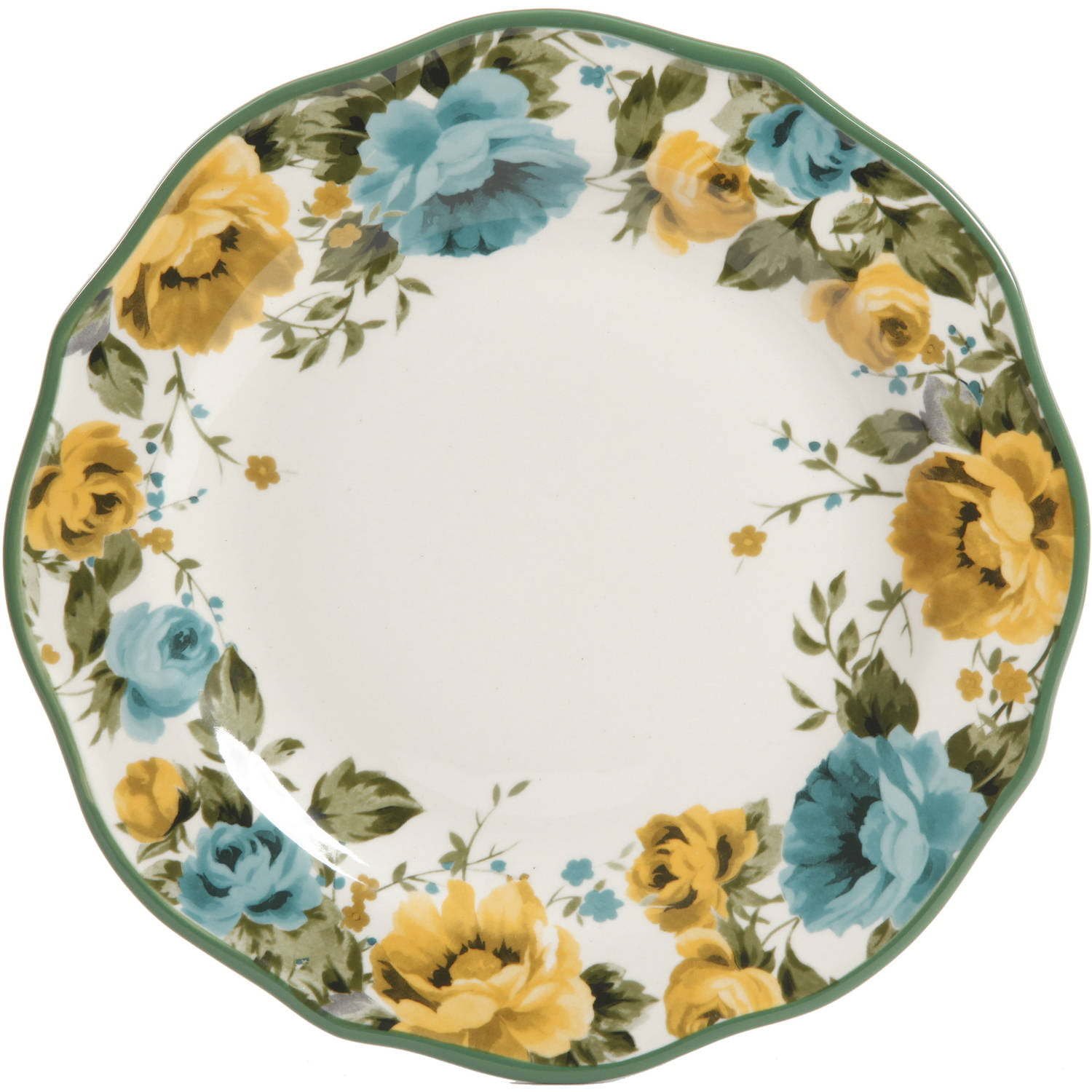 5.Features an elegant design with scalloped edges and a yellow and blue floral pattern