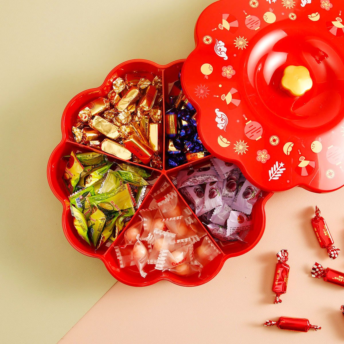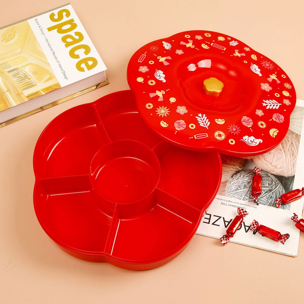 Home > 1pc Candy Storage Box Fruit For Chinese New Year; Nuts Tray With Lid; Snacks Organizer Food Container; Spring Festival Desktop Decor