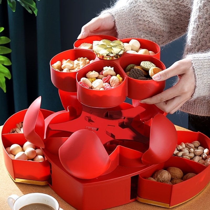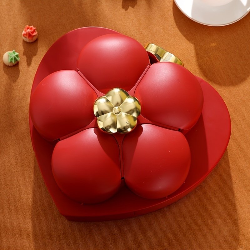 1pc Heart-shaped Dried Fruit Plate Nut Storage Box Home Living Room Coffee Table Snack Box Fruit Plate Chinese New Year Rotating Candy Box