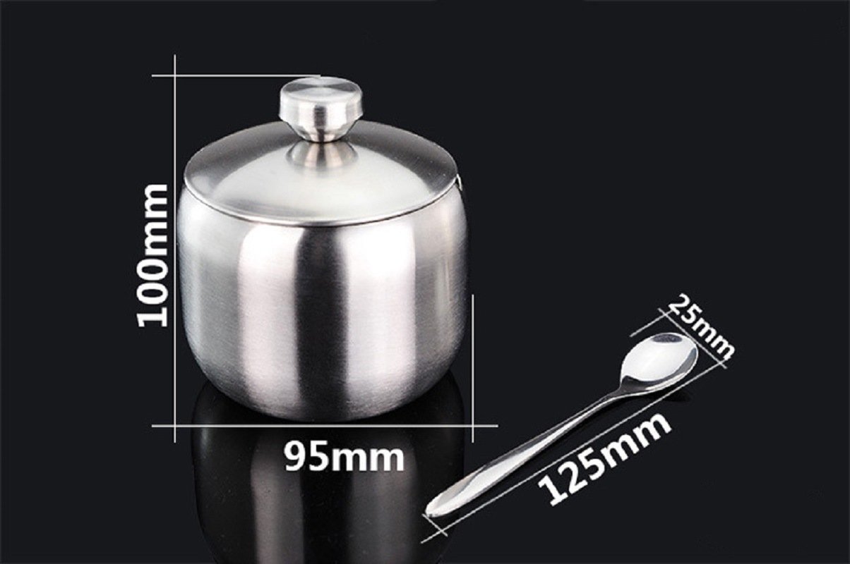 1.Set of 4 seasoning jars made of premium 304 stainless steel, rust proof and durable. Size per jar: 6.5in x 8.5in