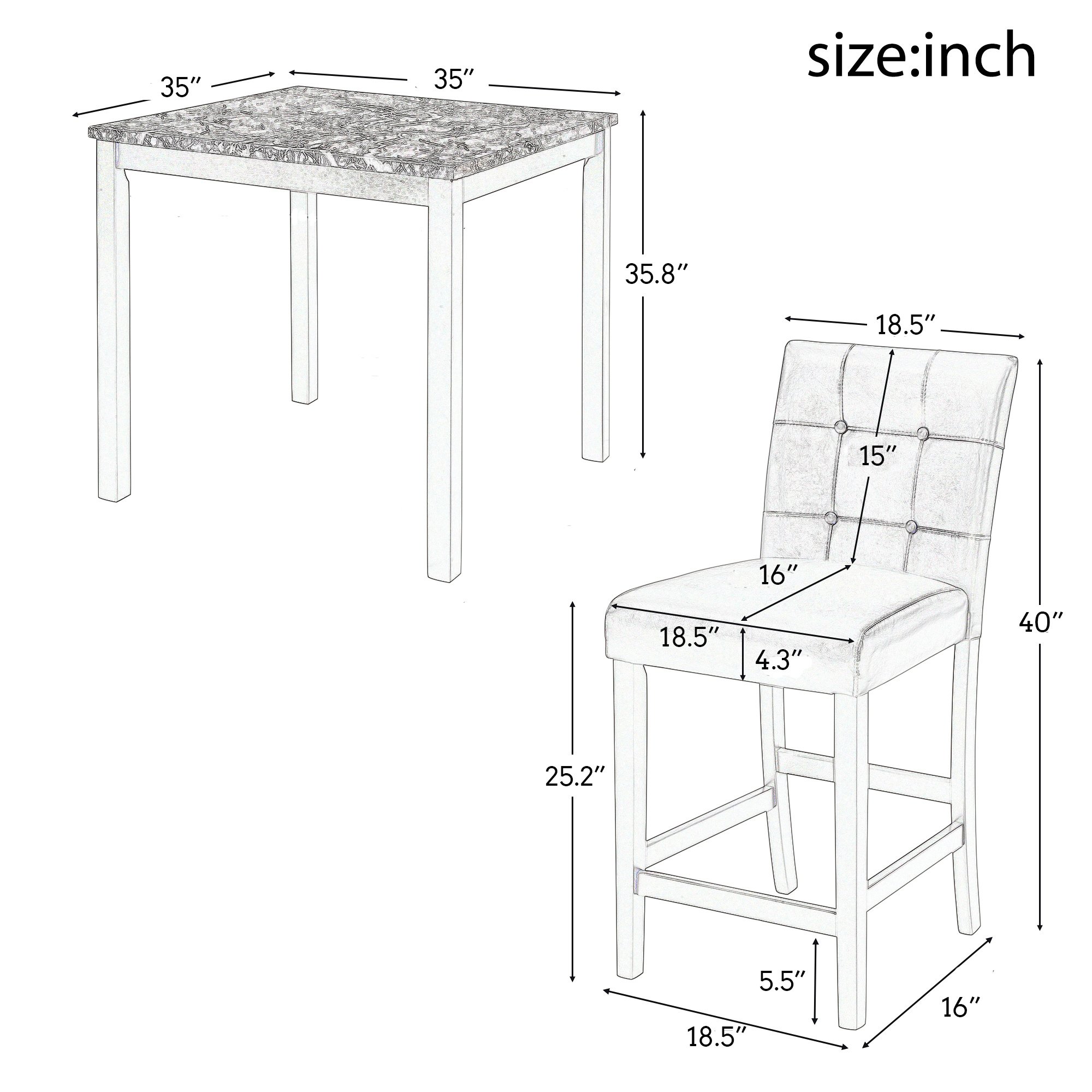 5.Dimensions: 1 x Counter Height Dining Table: 35" L x 35" W x 35.8" H; 4 x Counter Height Dining Chairs: 18.5" L x 16" W x 40" H; Need easy assembly.