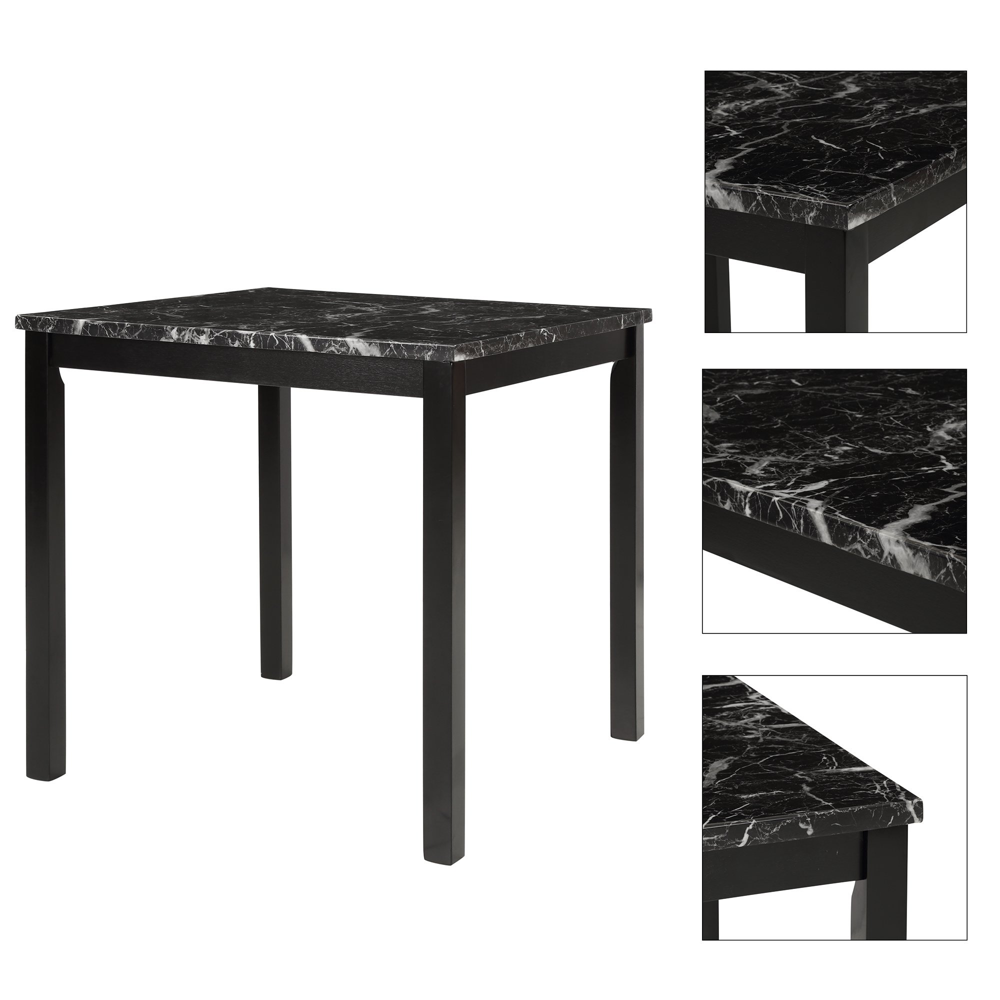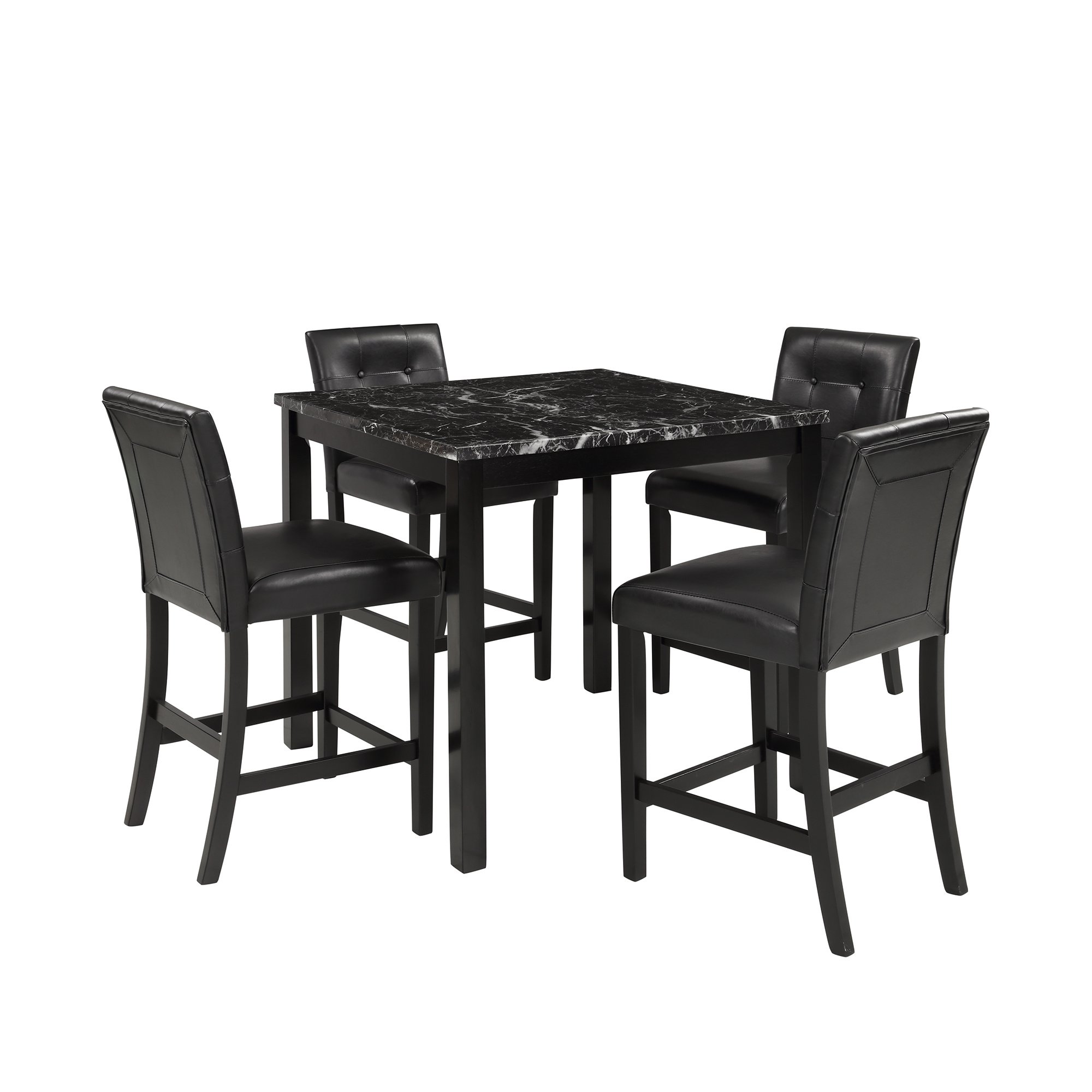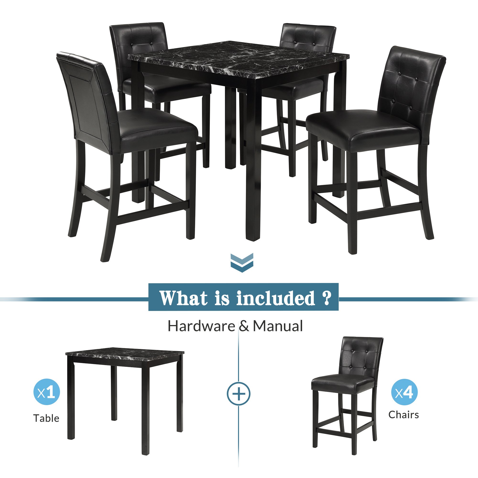 5-Piece Kitchen Table Set Faux Marble Top Counter Height Dining Table Set with 4 PU Leather-Upholstered Chairs (Black)