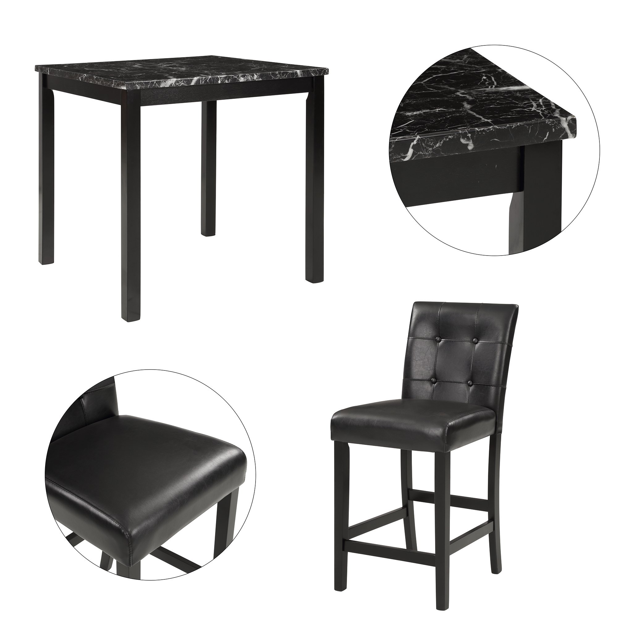 Home > 5-Piece Kitchen Table Set Faux Marble Top Counter Height Dining Table Set with 4 PU Leather-Upholstered Chairs (Black)