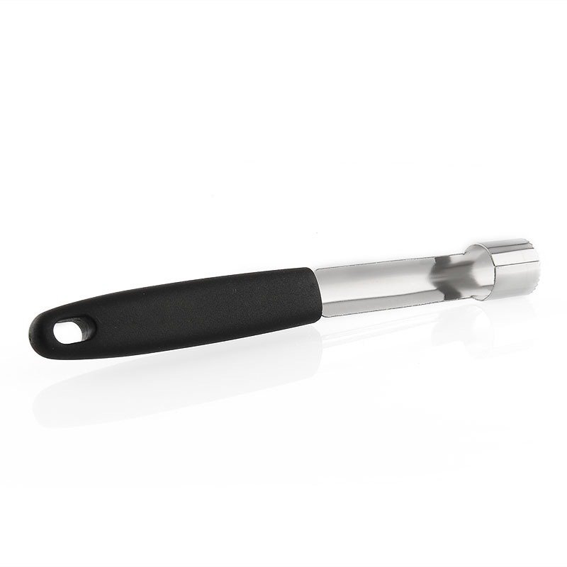 Suitable for coring apple; pear; bell pepperEffortlessly remove cores from fruitSimply push the stem into the core of the apple and twist to removeSharp and long-lasting stainless steel coring bladeMaterial: Stainless steel + PlasticTotal length: 178mm (7'')Diameter:20mm(0.8'')Color: BlackPackage cinluded: 1 * Corer