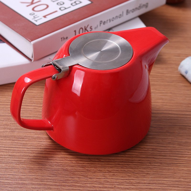 Porcelain teapot with stainless steel lid perfectly brew the tea, does not leak and tickle. Using teapot infuser will be very convenient and enough for all family members or guests.