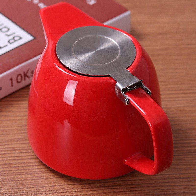 4.This porcelain teapot is equipped with a stainless steel cover, which is opens widely and conveniently, without interfering with the filling of the tea leaves, and closes tightly during the welding process.