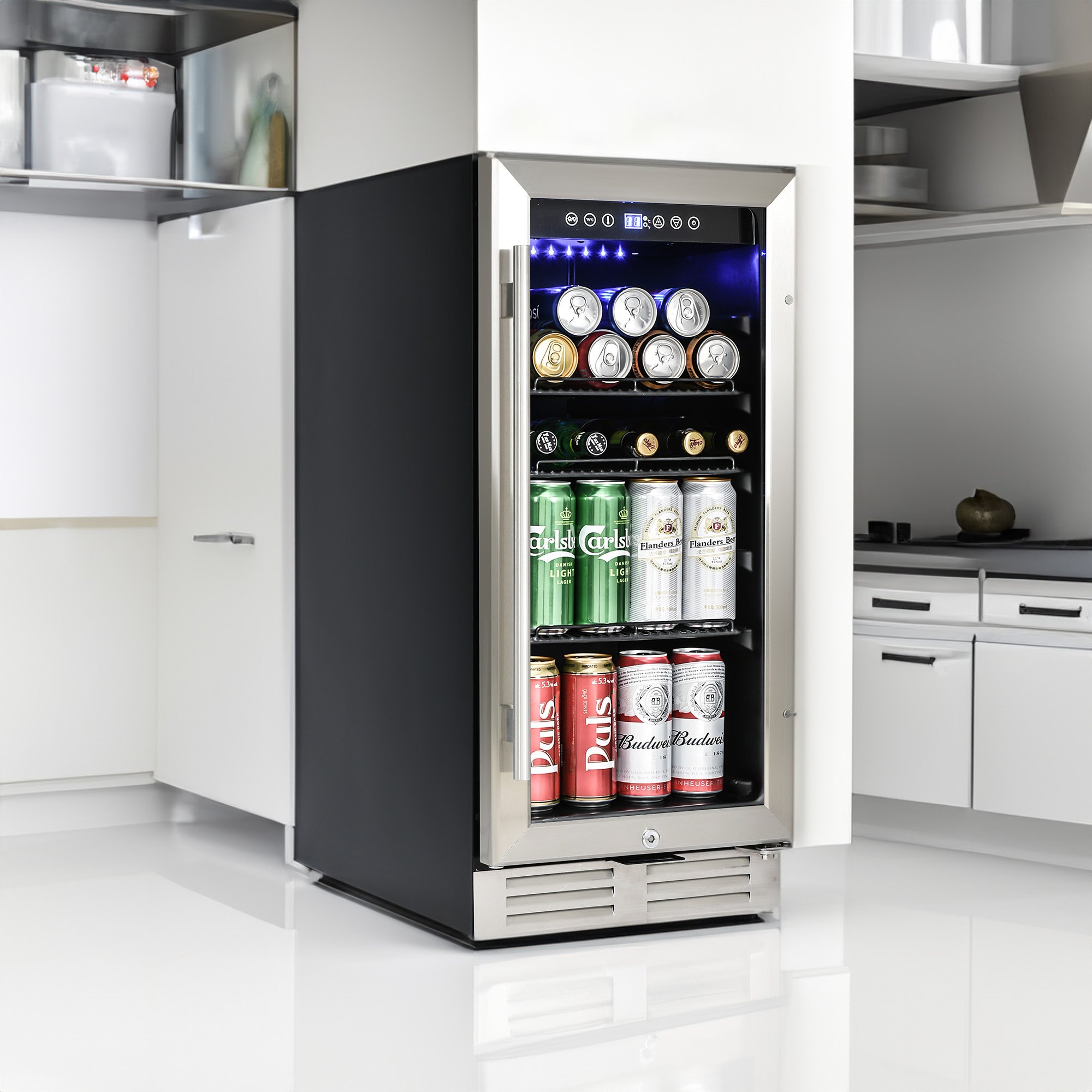 1.1. Versatile Built-in & Freestanding Design: Enjoy cold drinks anytime, anywhere, with this 15-inch mini refrigerator that doubles as a wine cooler. Whether in your living room, kitchen, bar, or office, it seamlessly blends with any furniture setup.