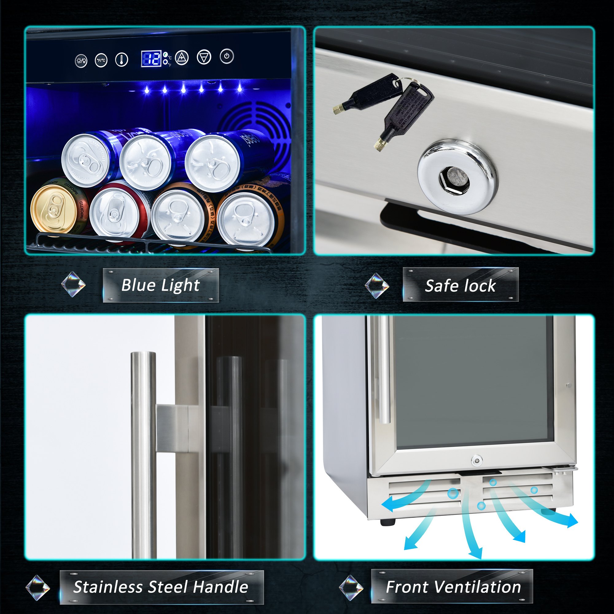 4.4. Elegant Display: Admire the stylish appearance of this beverage refrigerator with its stainless steel framed double tempered glass door. Not only does it maintain the interior temperature, but it also prevents fogging, giving you a clear view of your drinks.