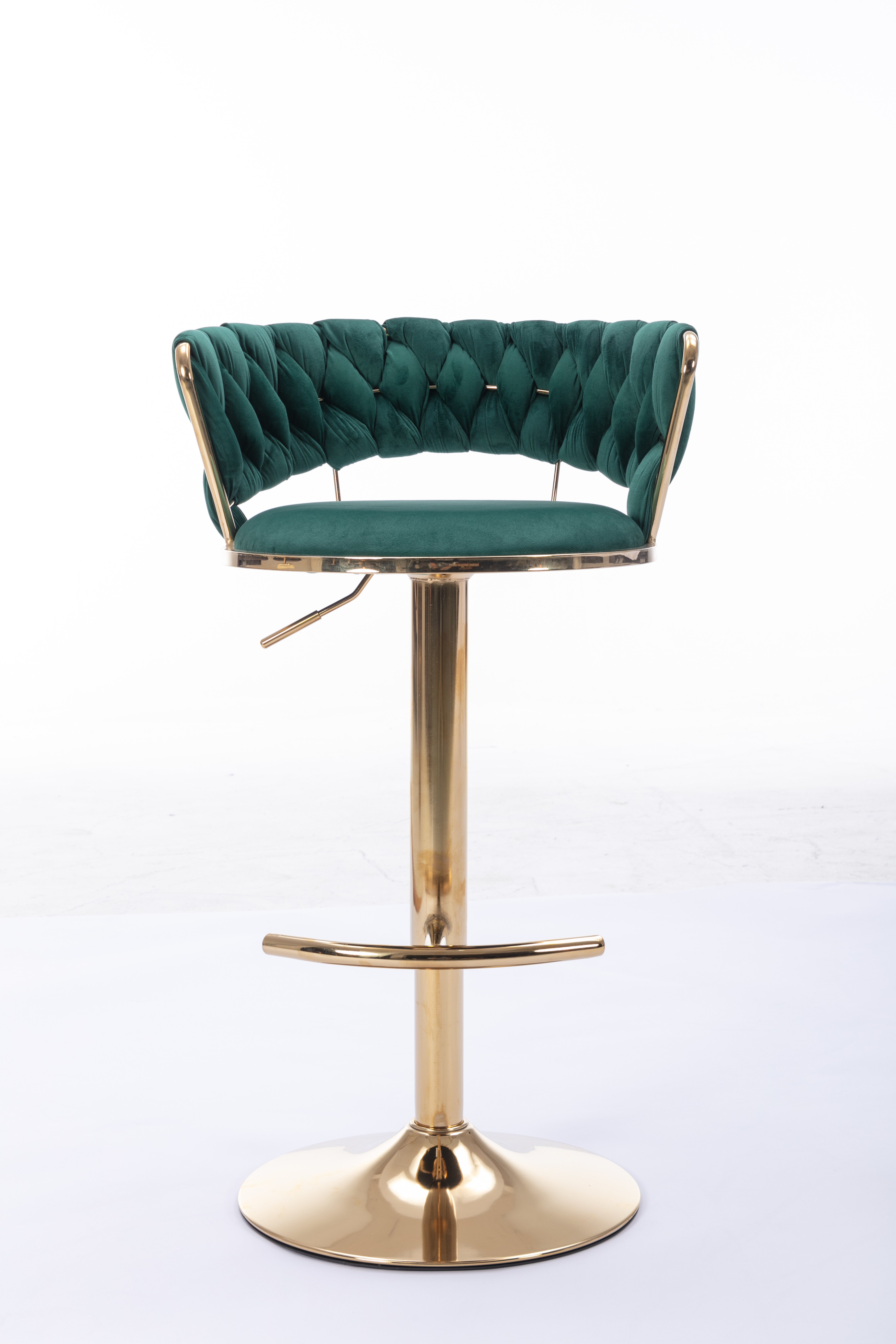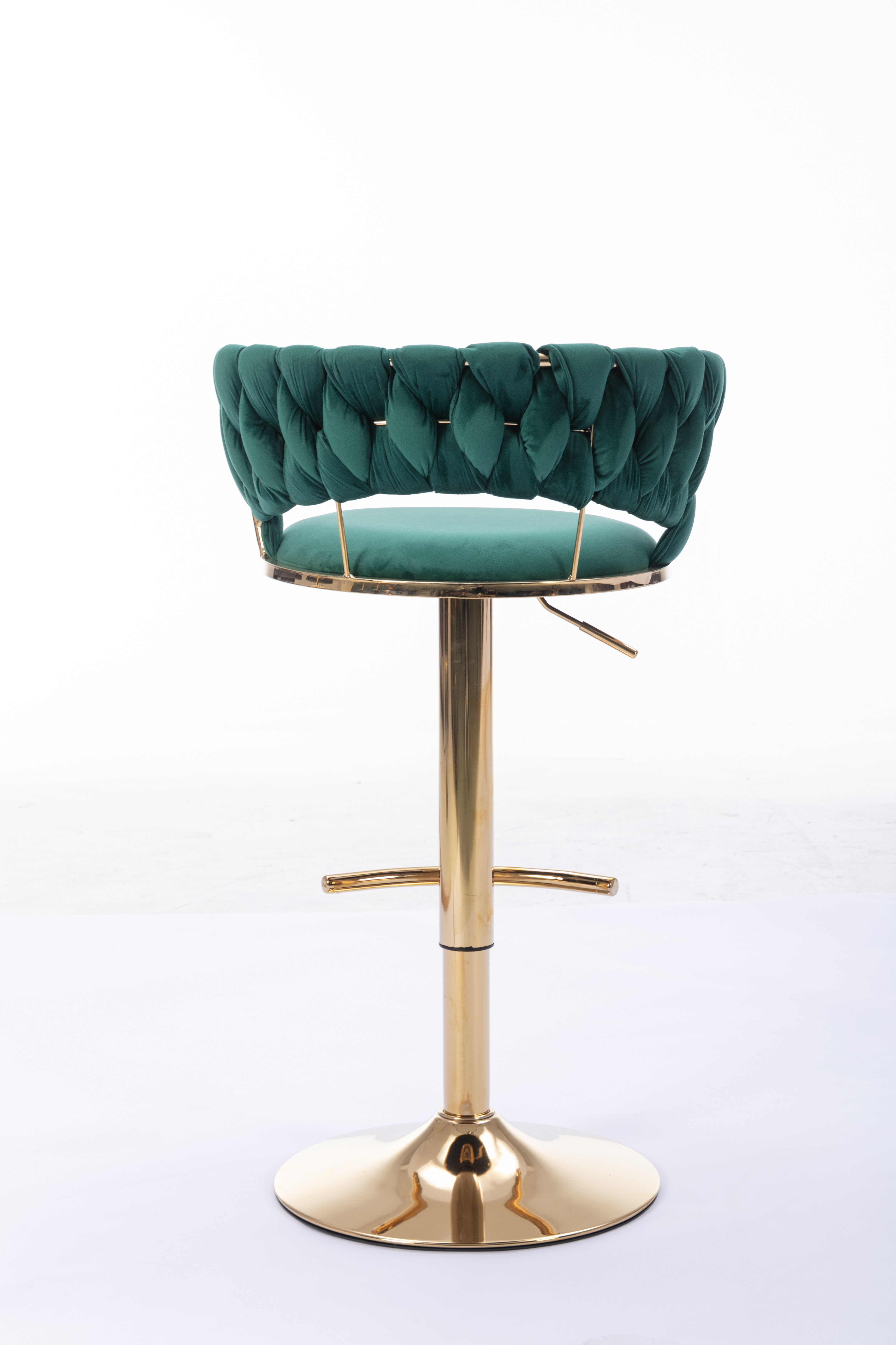 Set of 2 Bar Stools,with Chrome Footrest and Base Swivel Height Adjustable Mechanical Lifting Velvet + Golden Leg Simple Bar Stool-Green