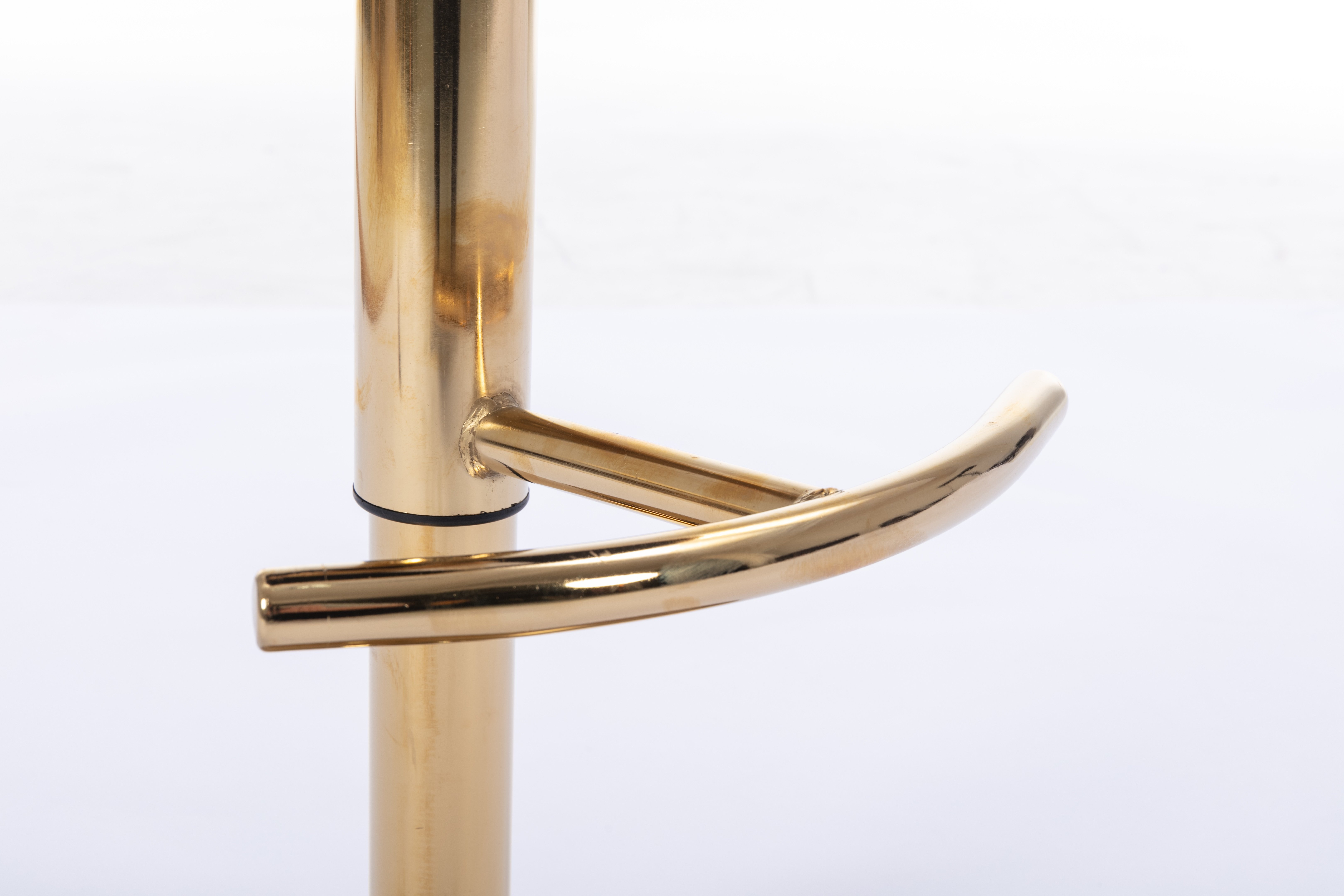 Modern Design Velvet Adjustable Bar Stools With Golden Base20.23"W*18.70"D*H30.71-38.98"HFloor to Seat Height:24.02"-32.28"Seat Width: 17.32"Seat Depth:17.32"Weight Capacity:250lb