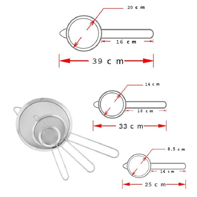 - 33 cm medium strainer can be used to sift thick, clumpy dry ingredients such as baby cereals, ground oatmeal, salt, spices and more.
