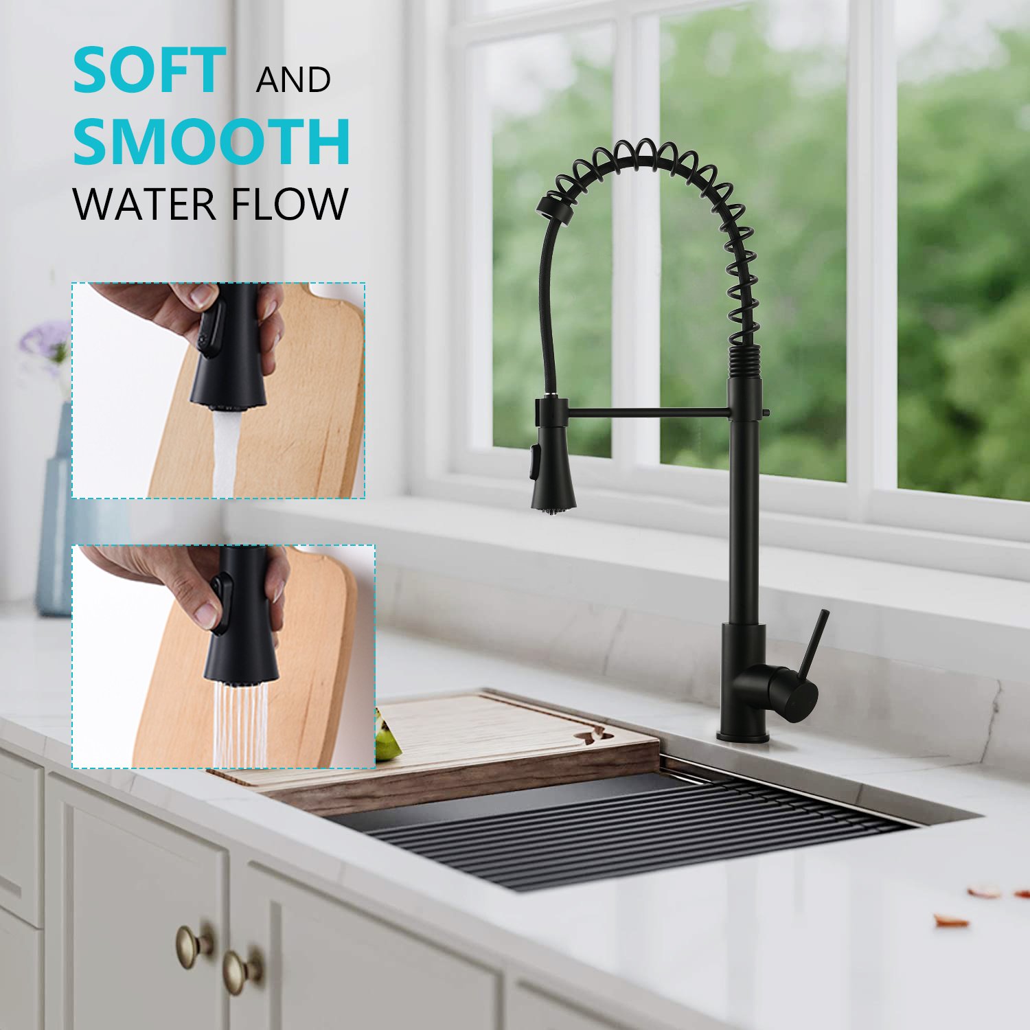 The Spring Pull Down Faucet is constructed of durable materials to meet all of your kitchen's needs. 360 Degree Swivel Pull Down Sprayer provide a full range of motion so you can wash your dishes from any angle .The sleek design also helps to bring a professional look to your kitchen.