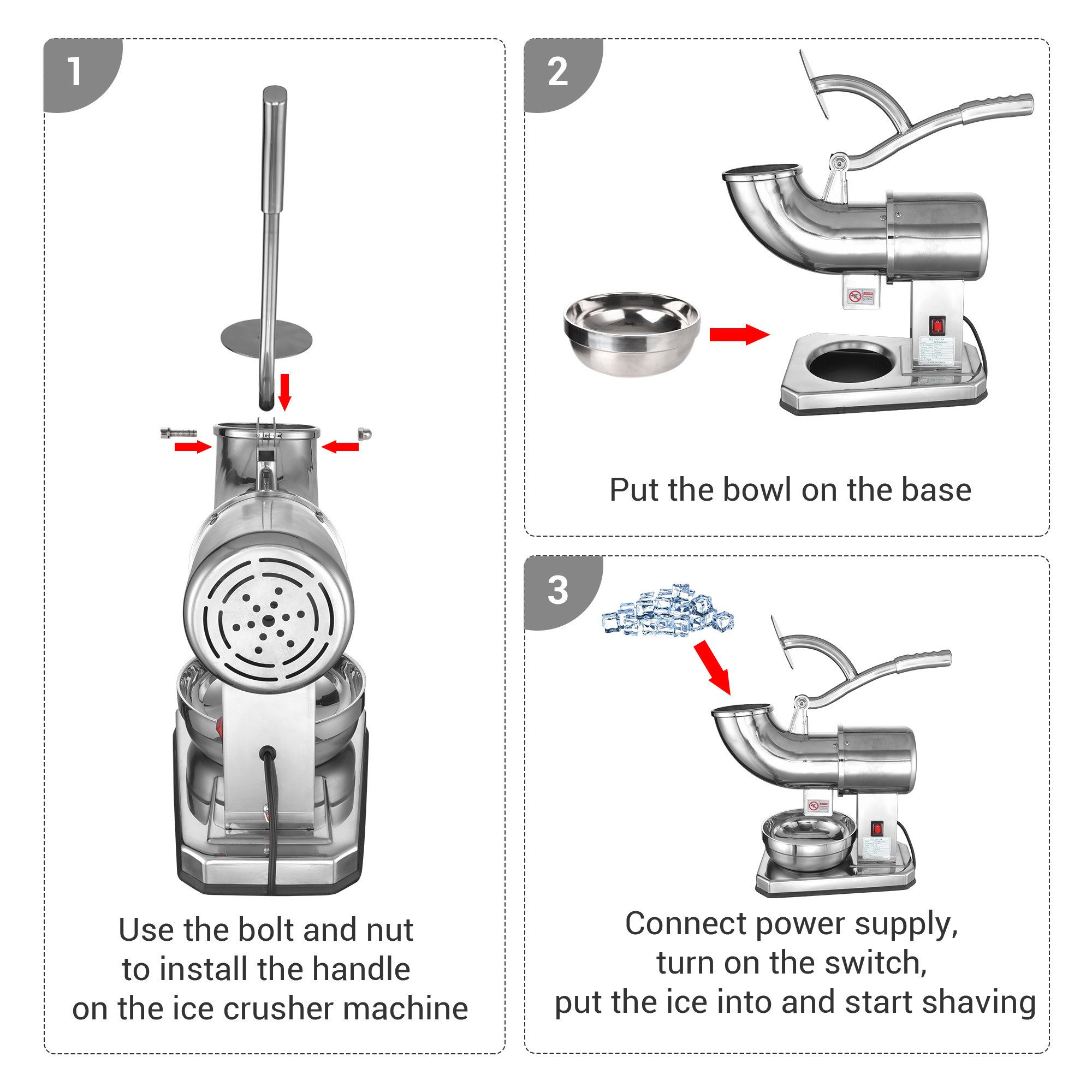 - Fast & Powerful Crushing - Features a maximum rotating speed of 2500RPM and is equipped with 2 hardened stainless steel blades; allowing it to crush up to 440Lbs of ice every hour for producing a large volume of shaved ice in a short time; with 2 backup blades for easy replacement