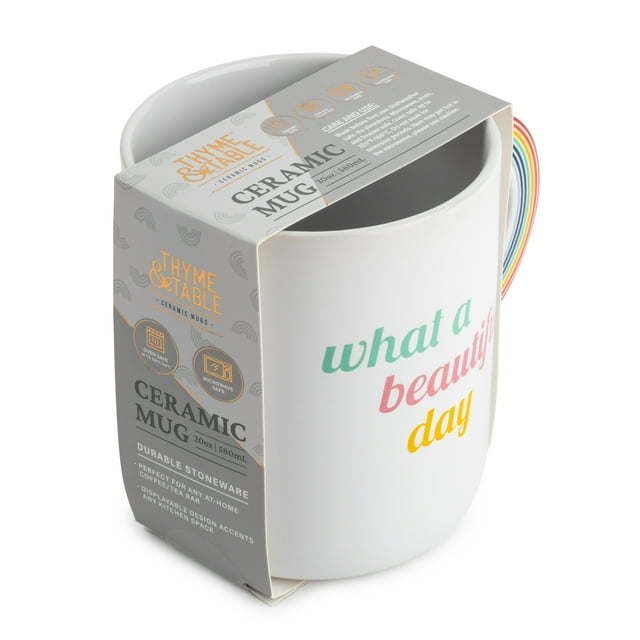 Thyme & Table Beautiful Day Ceramic Coffe Mug, 20 fl oz is made of durable stoneware and perfect for any at-home coffee or tea bar. Displayable design accents any kitchen space.