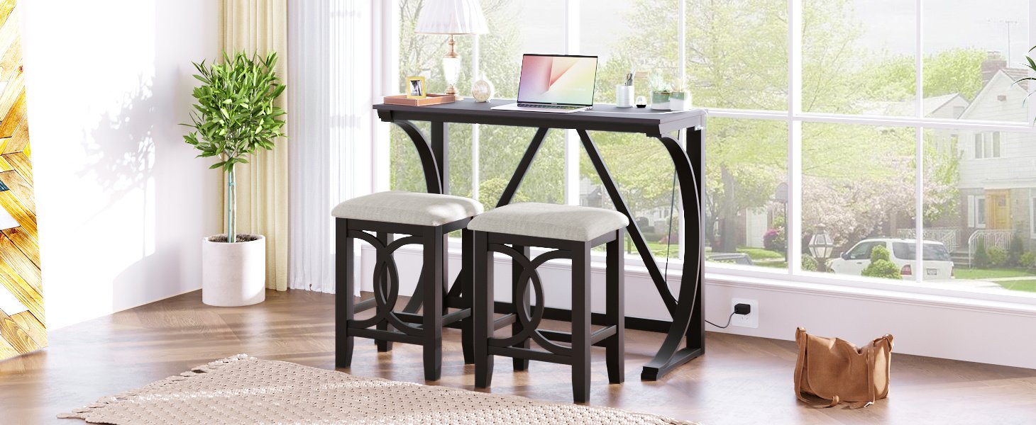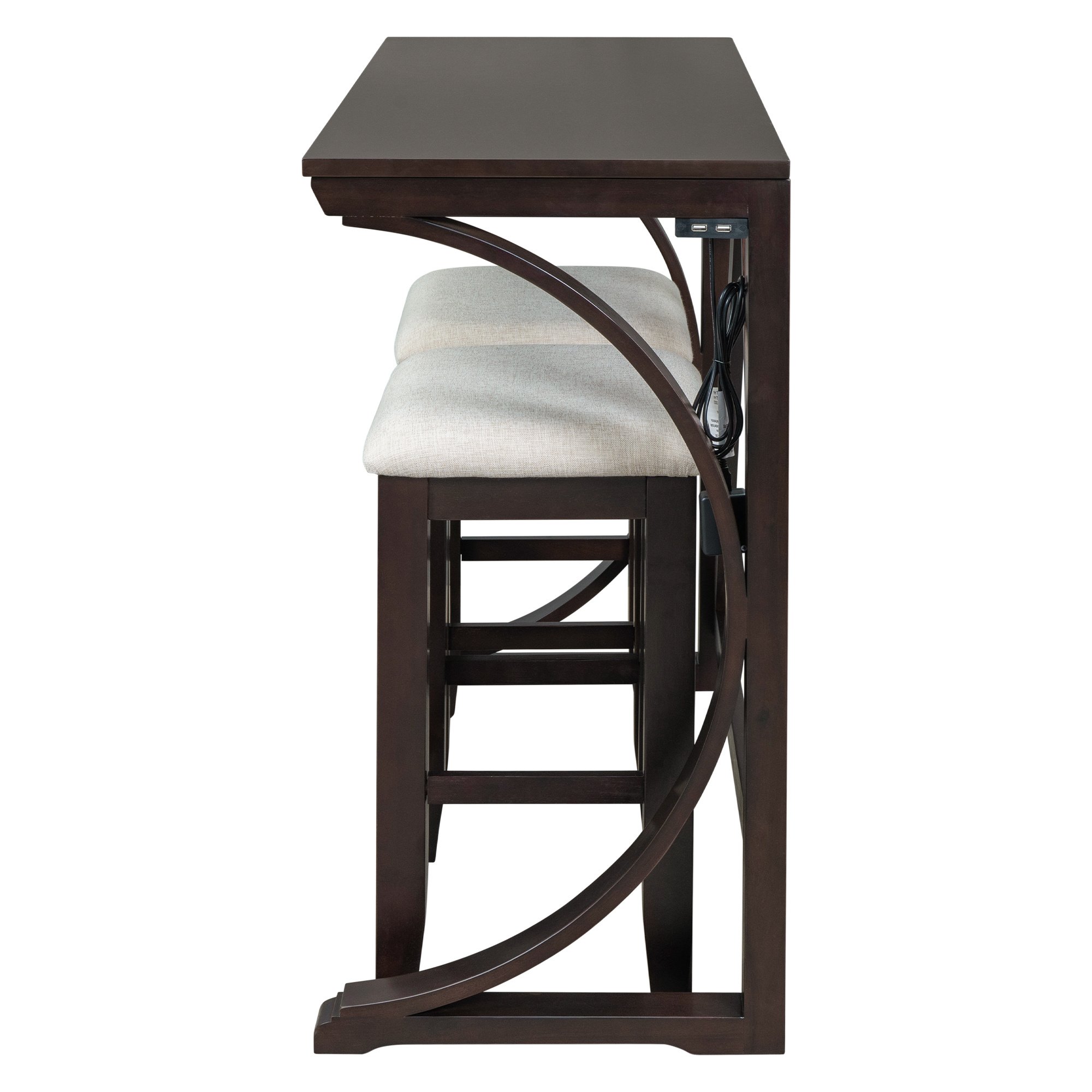 Bar Set with Built-in USBCreative built-in USB design makes charge your phone or set up your favorite electronic appliances possible. Thanks to the USB ports, this counter height set allows to keep your devices charged when working or playing.